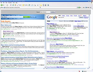 I posted a link yesterday that showed Google and Yahoo search results on one page.
