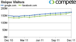 2. Employees on board. In 2006 whenever I talked with a Google employee about social stuff like Twitter or Facebook they’d turn their noses and say something derogatory. “That’s lame,” is what I heard over and over. It was clear that the rank and file Google employee just didn’t think Twitter or Facebook would ever challenge Google in any real way. I haven’t heard that attitude for quite a while now. You just have to look at Compete.com for why.