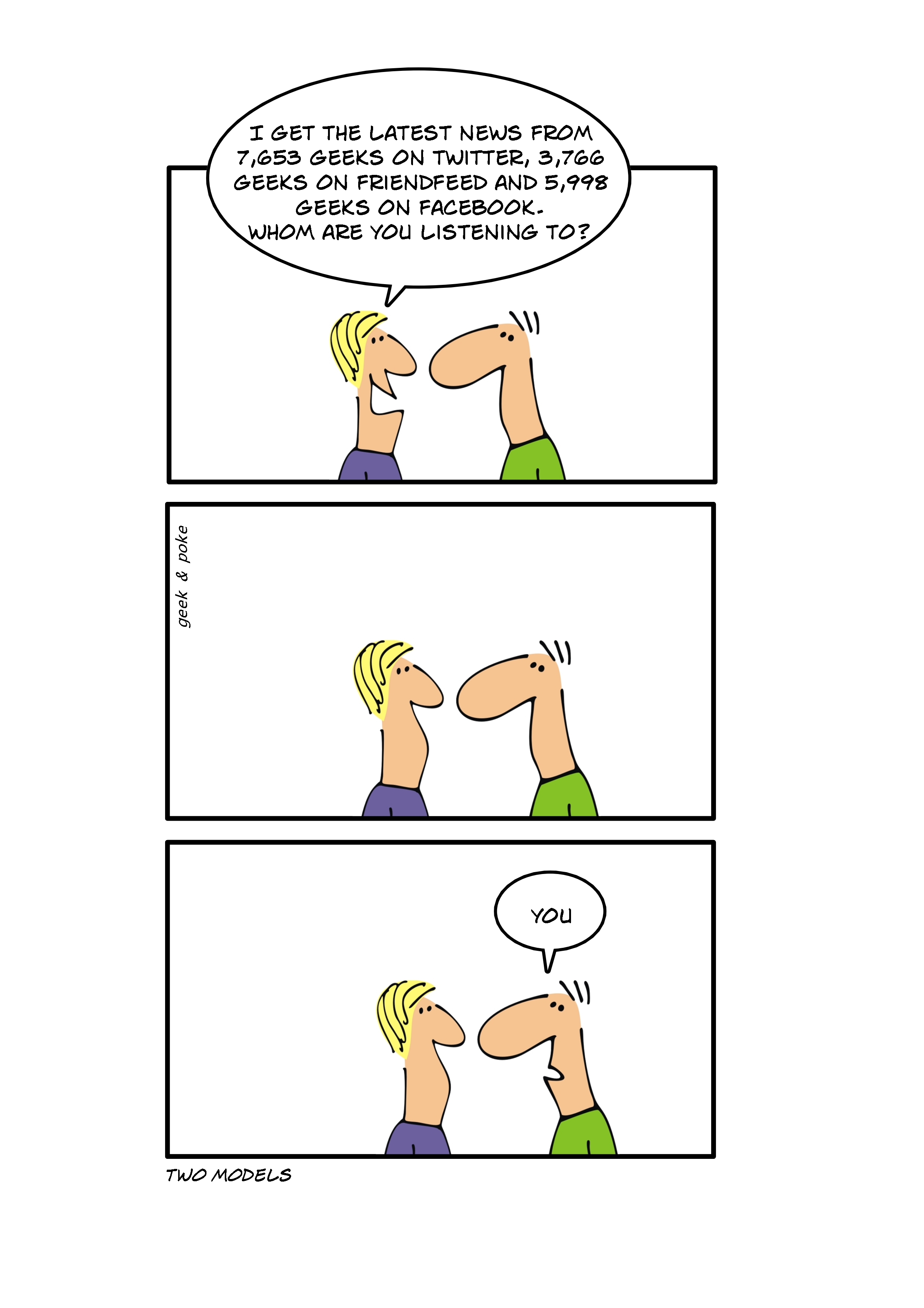 Anyway, I was pretty passionate about this CNN story, since every hour we had been turning through the channels trying to learn about Iranian news (my wife is Iranian and hadn’t been able to call her relatives in Tehran). So I was telling Luke about how Twitter was totally kicking ass over CNN (CNN, when I kept turning it on, had nothing on and, instead was playing shows like Larry King Live with a couple of guys who build motorcycles).